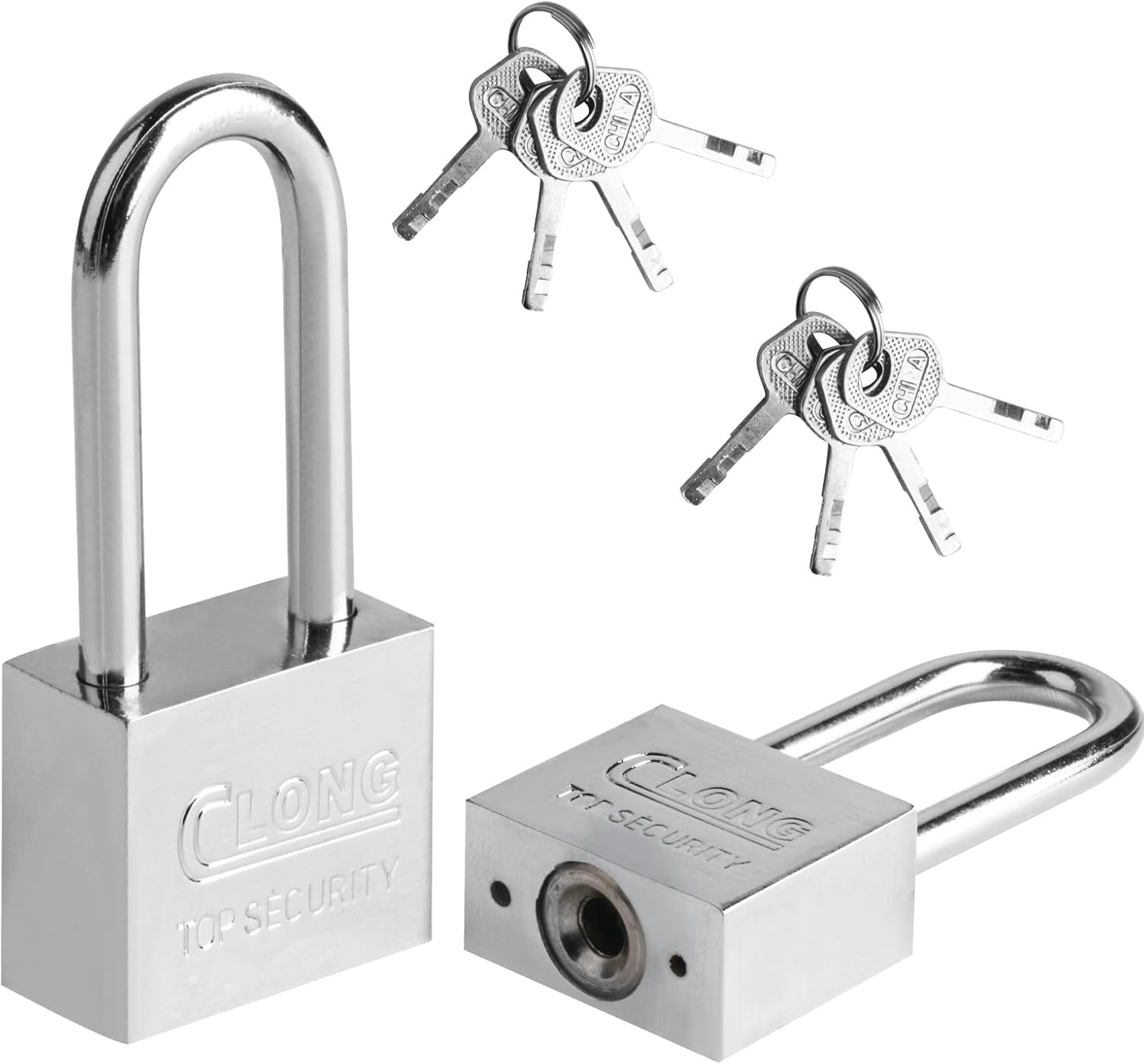 2 Pcs Long Shackle Padlocks With Keys - Keyed Outdoor Locks for Shed, Gym Locke