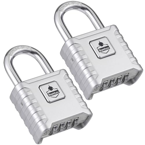 SharkByte 2 Pack Heavy Duty Combination Padlocks [Weatherproof] 52mm 4-Digit Outdoor Locks with 8mm Stainless Steel Shackles, Anti-Rust & Resettable Code Padlocks for Gate, Shed, Garage, Gym - Silver