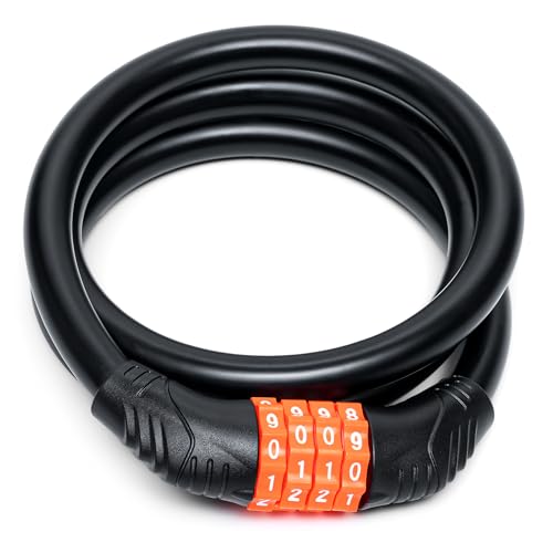Bike Lock Combination Lock 4 Digit |1M X 12mm| Heavy Duty Bike Locks High Security - Anti Theft Bicycle Lock for Motorcycle Fence Gate Shed Trailer – Rubber Coated Wire