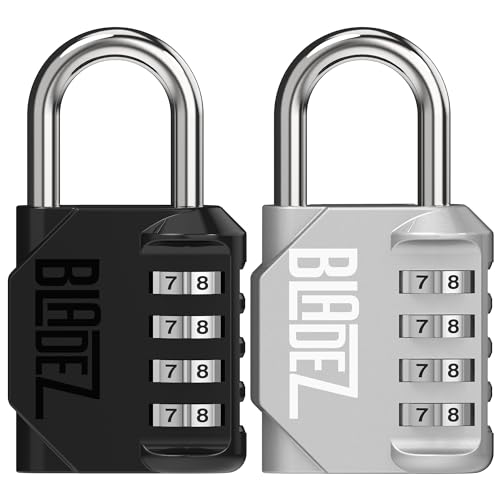 Bladez Combination Padlock with Code, Heavy Duty 4 Digit Pad Locks with Code, Weatherproof & Rust Resistant Locker Padlocks for Gym, School, Shed, Toolbox, Storage & Gate Pack of 2 Black & Silver