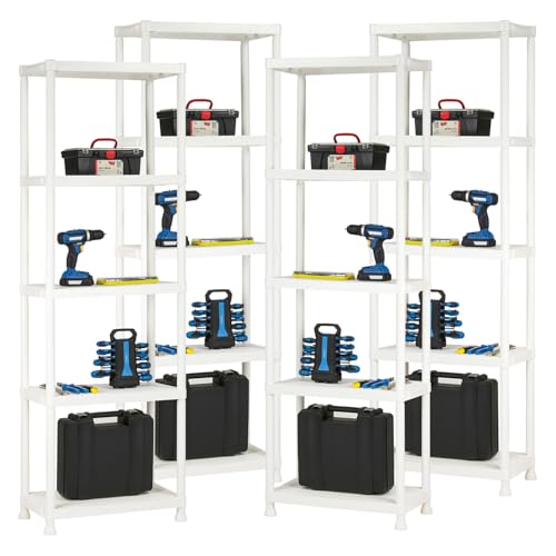 Taylor & Brown 4 x 5 Tier Heavy Duty White Plastic Garage Storage Shelving Wide Shelves Shed Shelf Unit Home Office Pantry Workshop Racking