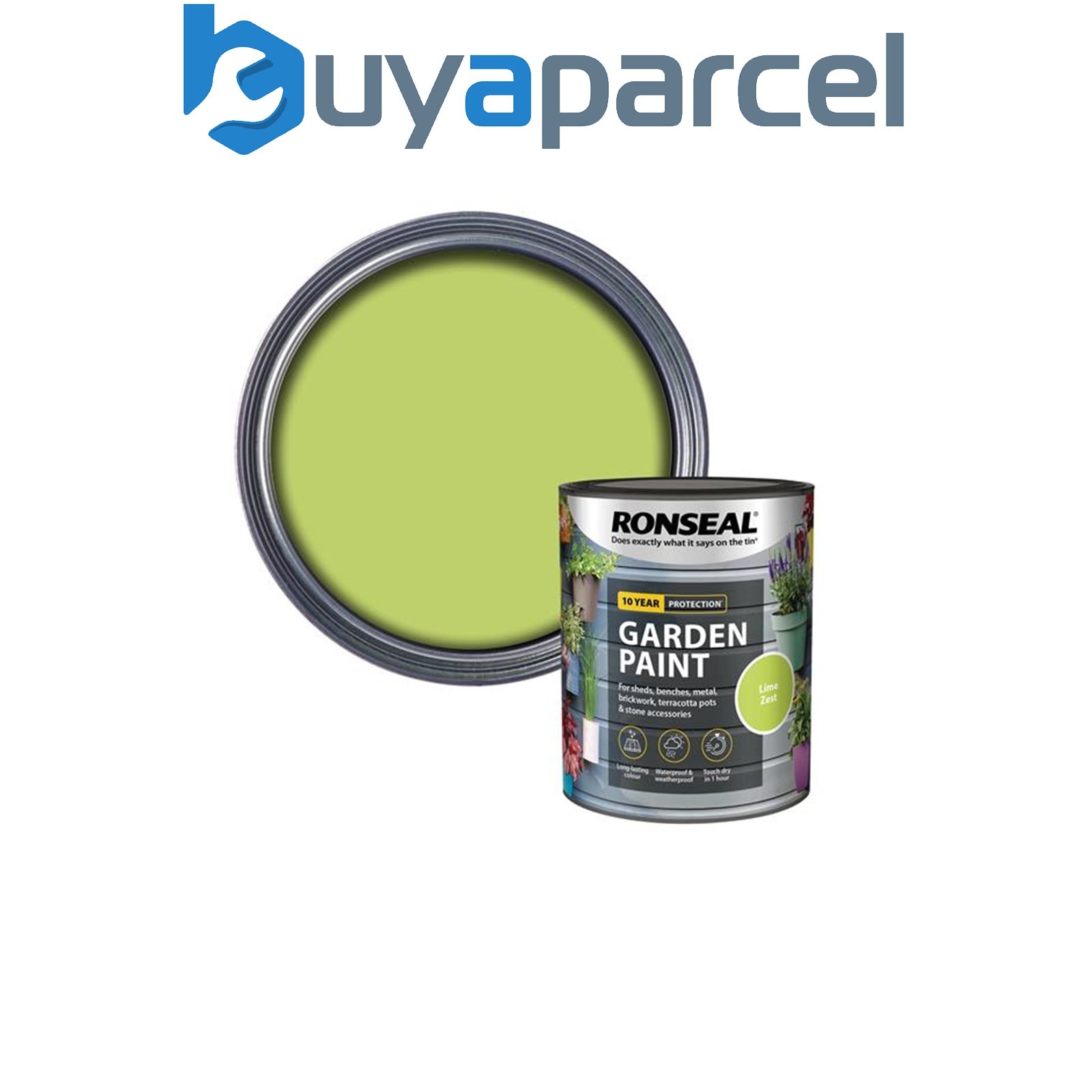 Ronseal 37412 Garden Paint Lime Zest 750ml Exterior Outdoor Wood Shed Metal Bric