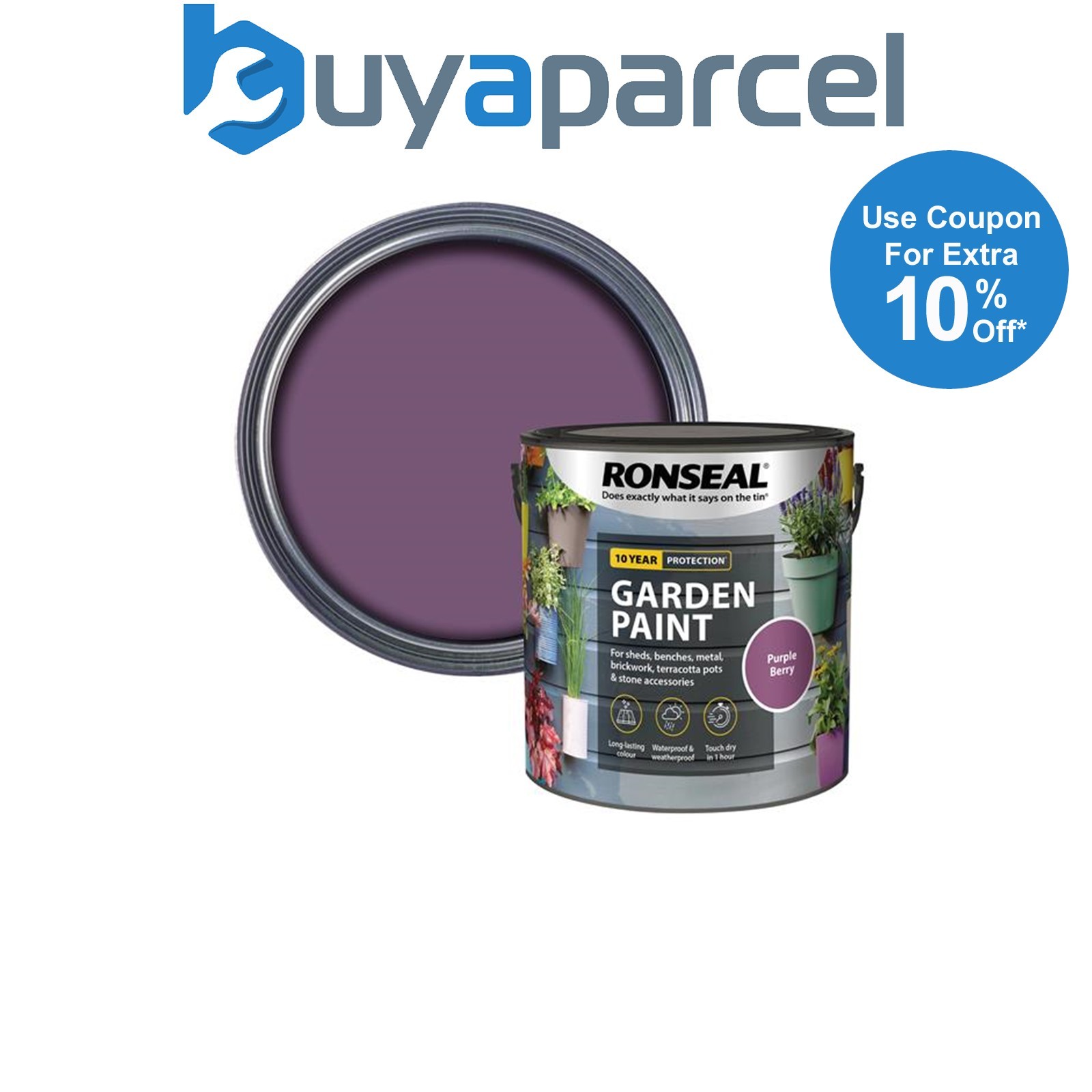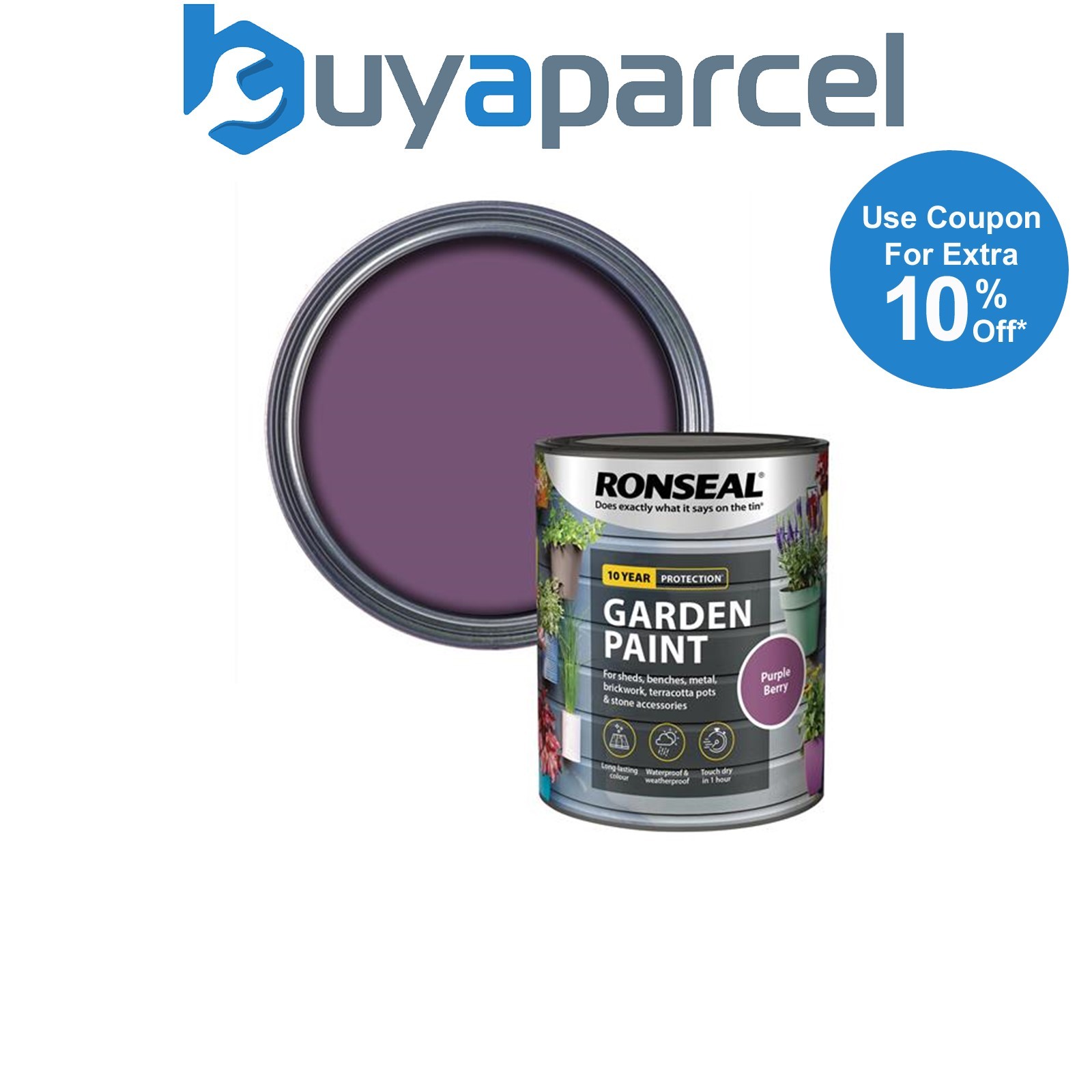 Ronseal 37377 Garden Paint Purple Berry 250ml Exterior Outdoor Wood Shed Metal
