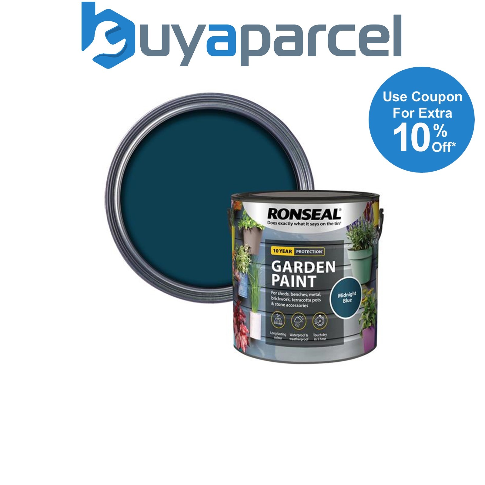 Ronseal 37434 Garden Paint Midnight Blue 2.5L Exterior Outdoor Wood Shed Metal