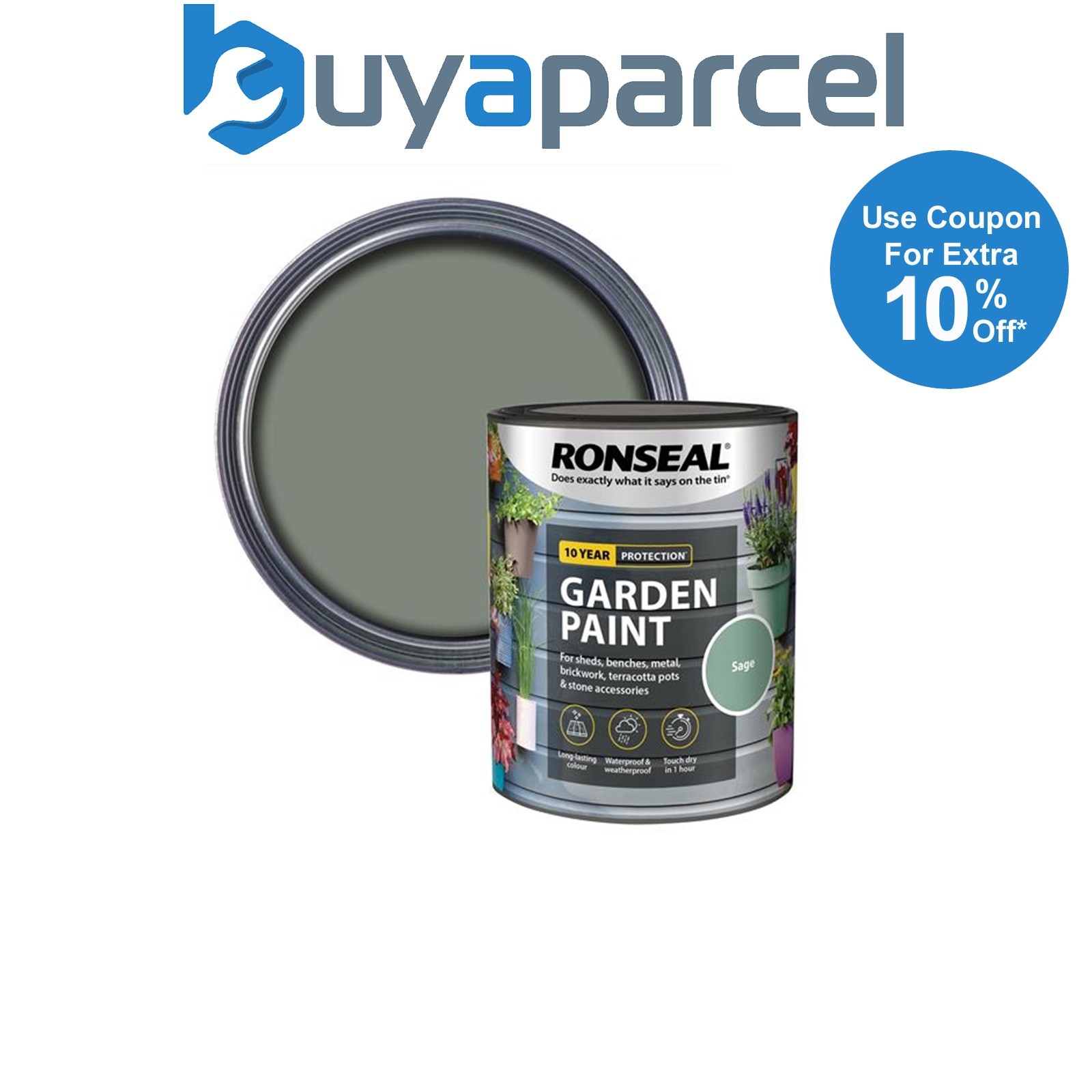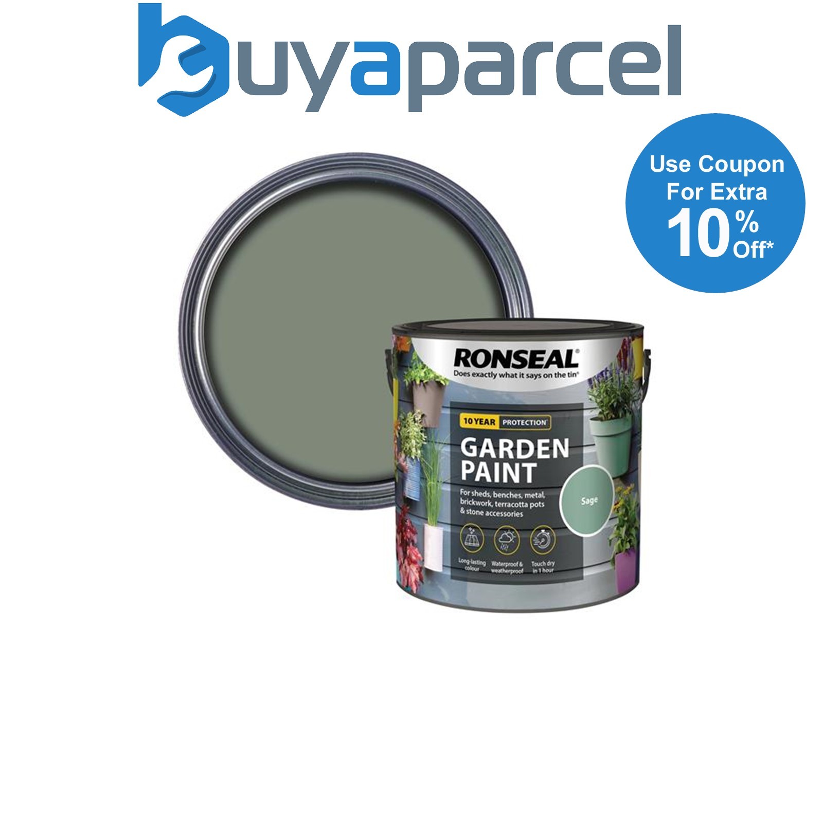 Ronseal 37419 Garden Paint Sage 2.5L Exterior Outdoor Wood Shed Metal Brick