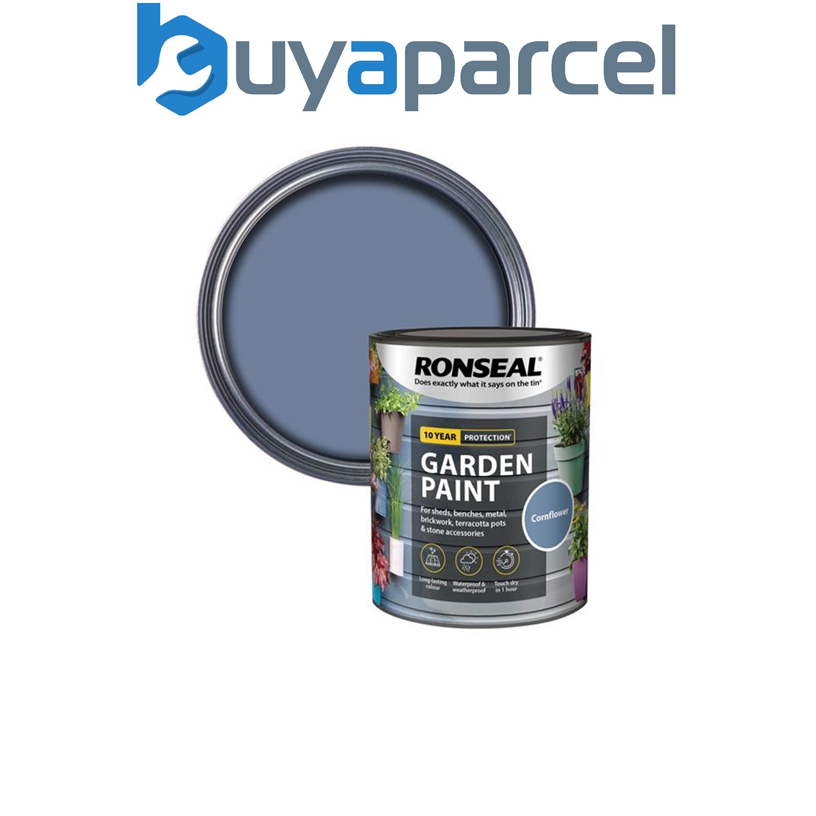 Ronseal 37399 Garden Paint Cornflower 750ml Exterior Outdoor Wood Shed Metal Bri