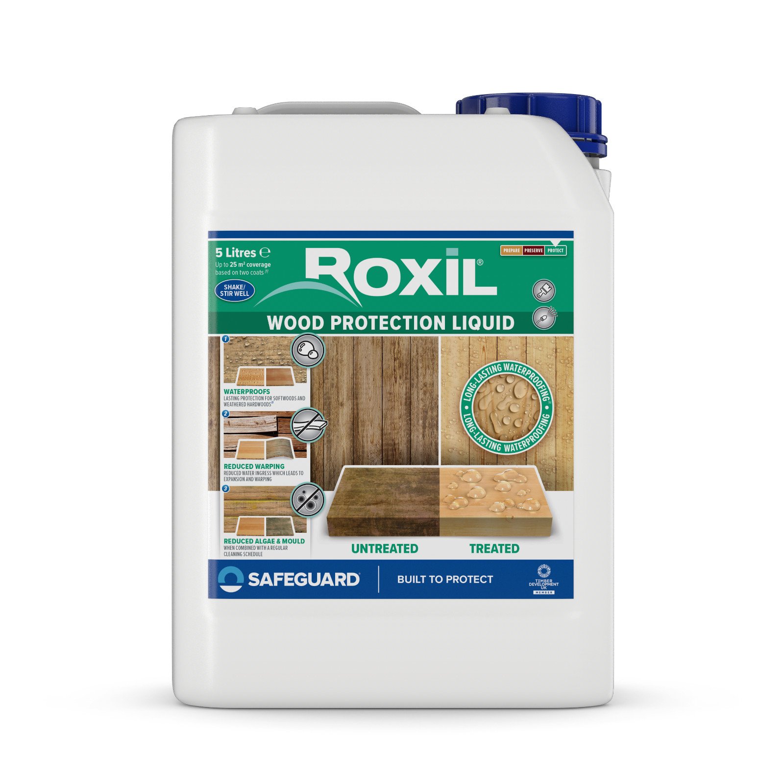 Roxil Wood Waterproofing Liquid - Decking Fence Shed Wood Sealer & Preserver -5L