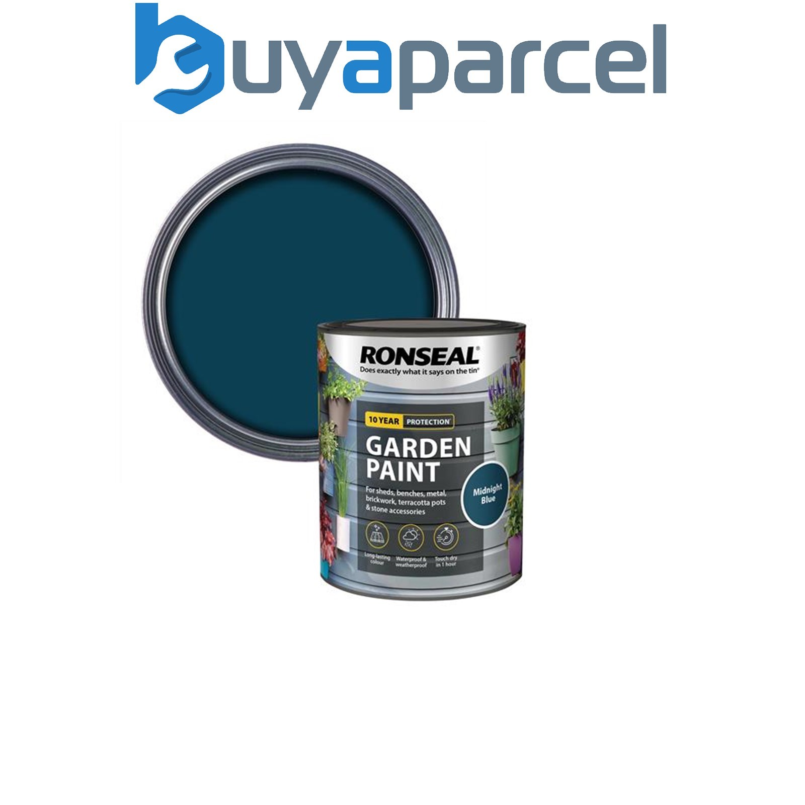 Ronseal 37413 Garden Paint Midnight Blue 750ml Exterior Outdoor Wood Shed Metal