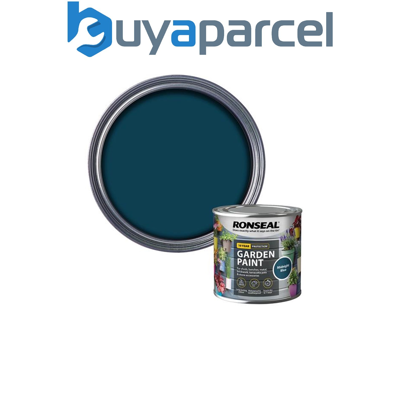 Ronseal 37389 Garden Paint Midnight Blue 250ml Exterior Outdoor Wood Shed Metal
