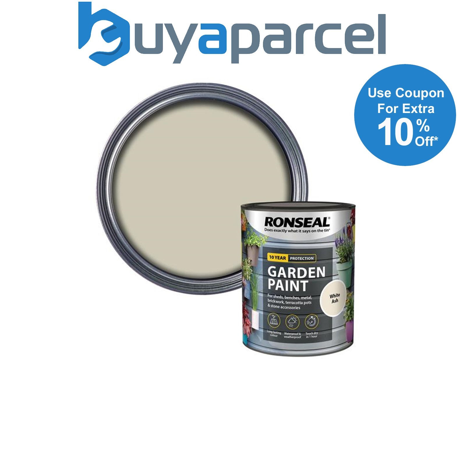 Ronseal 37378 Garden Paint White Ash 250ml Exterior Outdoor Wood Shed Metal