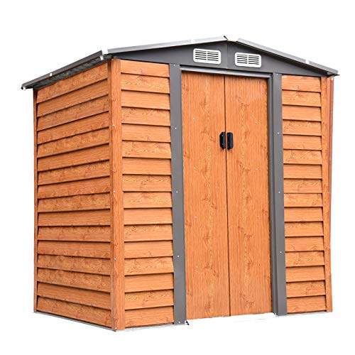 Outsunny 6.5x5.2ft Garden Shed Wood Effect Tool Storage Sliding Door Wood Grain