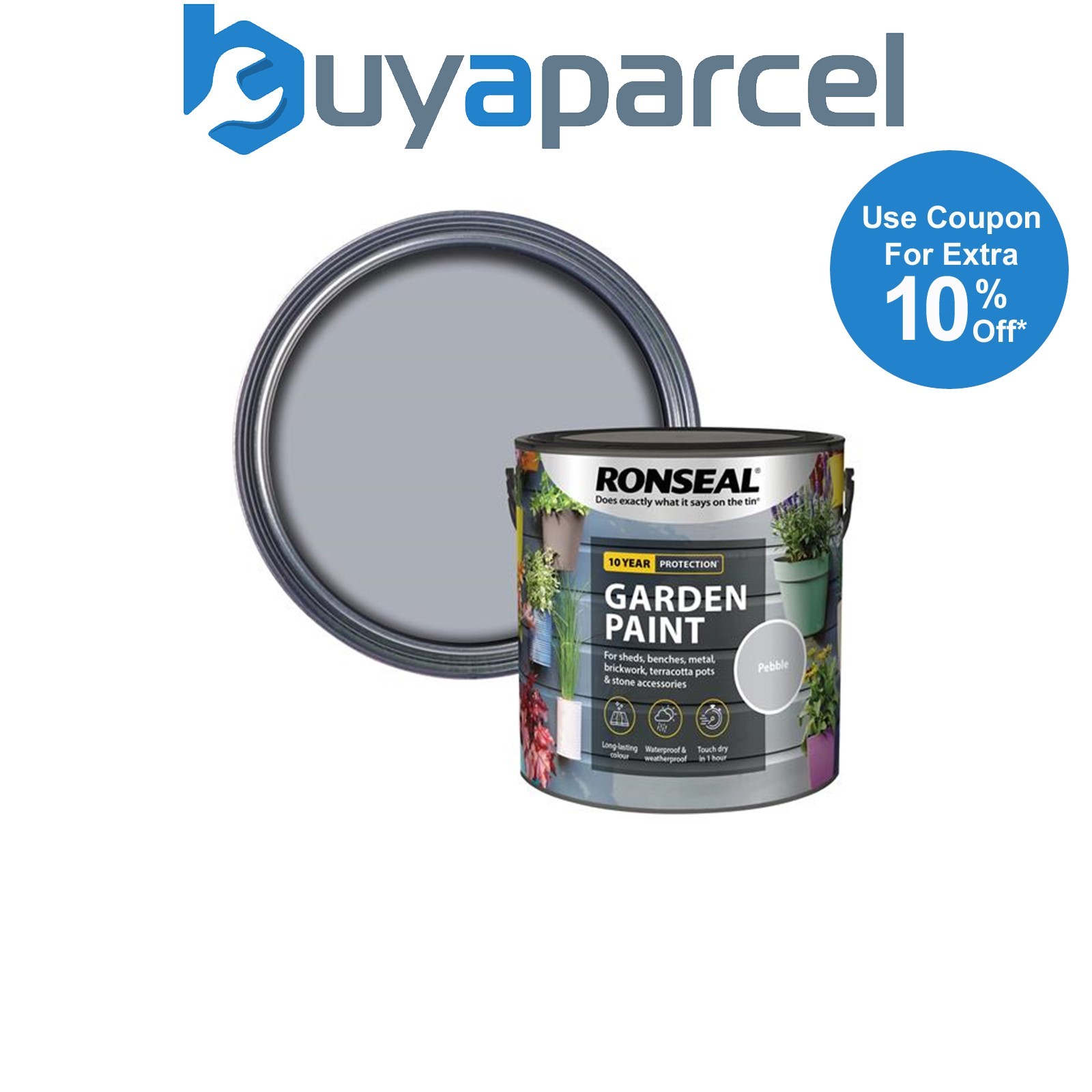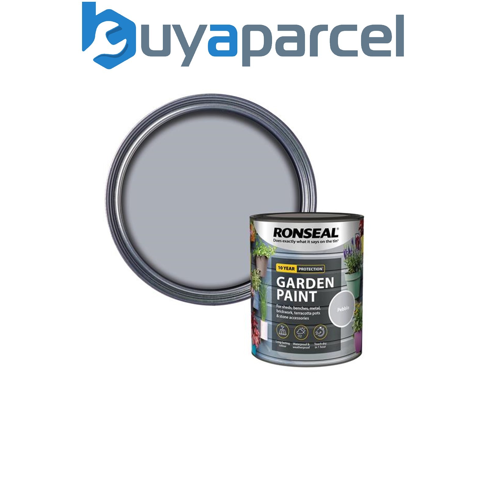 Ronseal 38510 Garden Paint Pebble 2.5L Exterior Outdoor Wood Shed Metal Brick