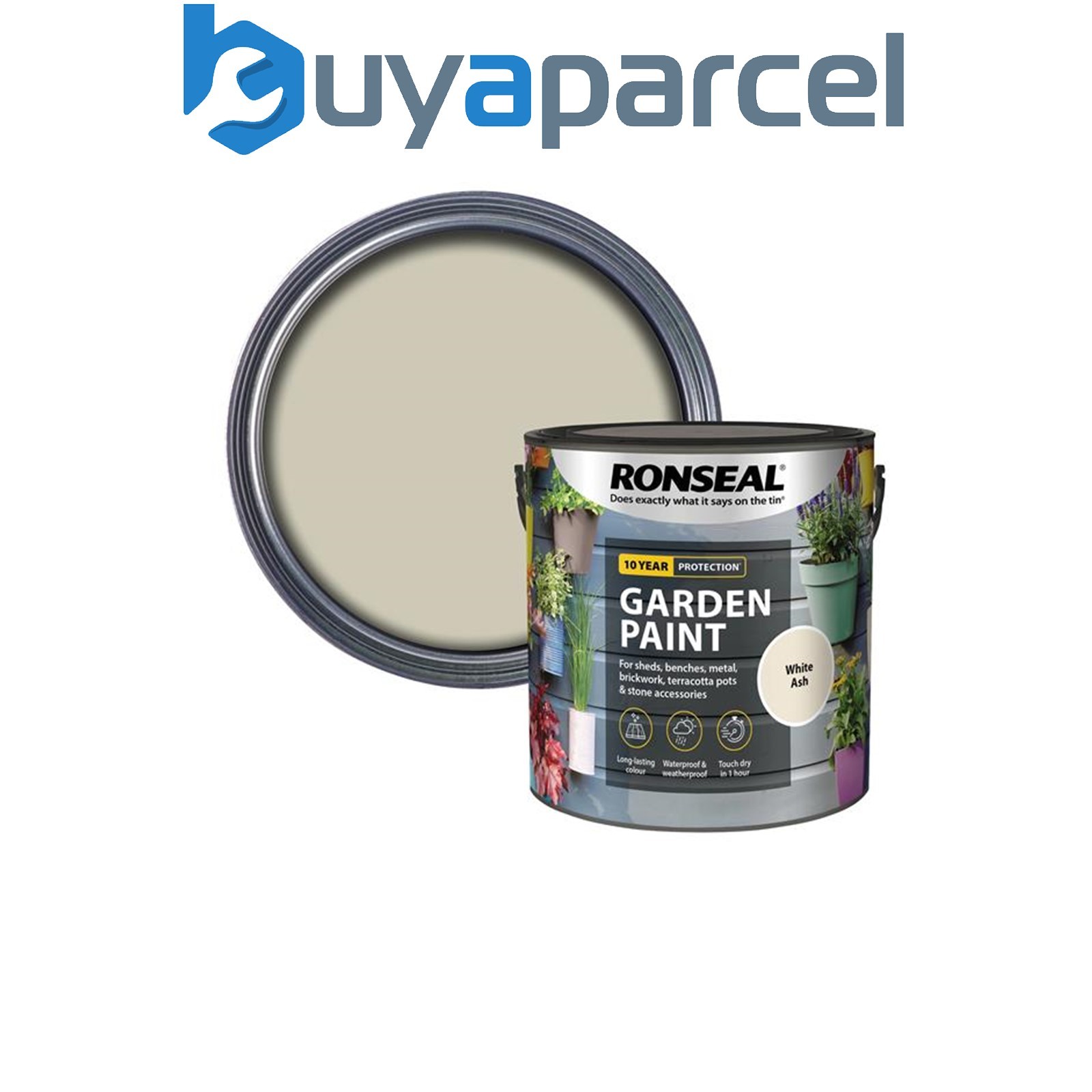 Ronseal 37426 Garden Paint White Ash 2.5L Exterior Outdoor Wood Shed Metal Brick