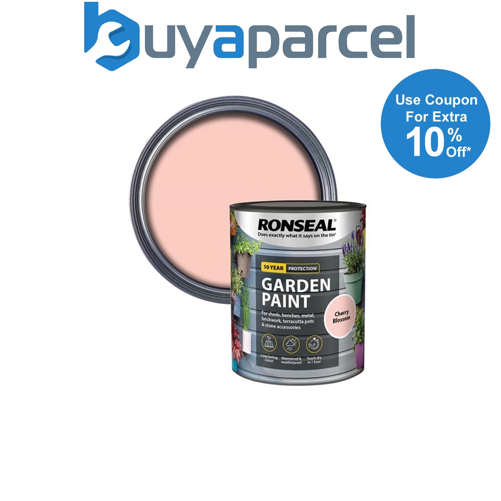 Ronseal 37599 Garden Paint Cherry Blossom 250ml Exterior Outdoor Wood Shed Metal