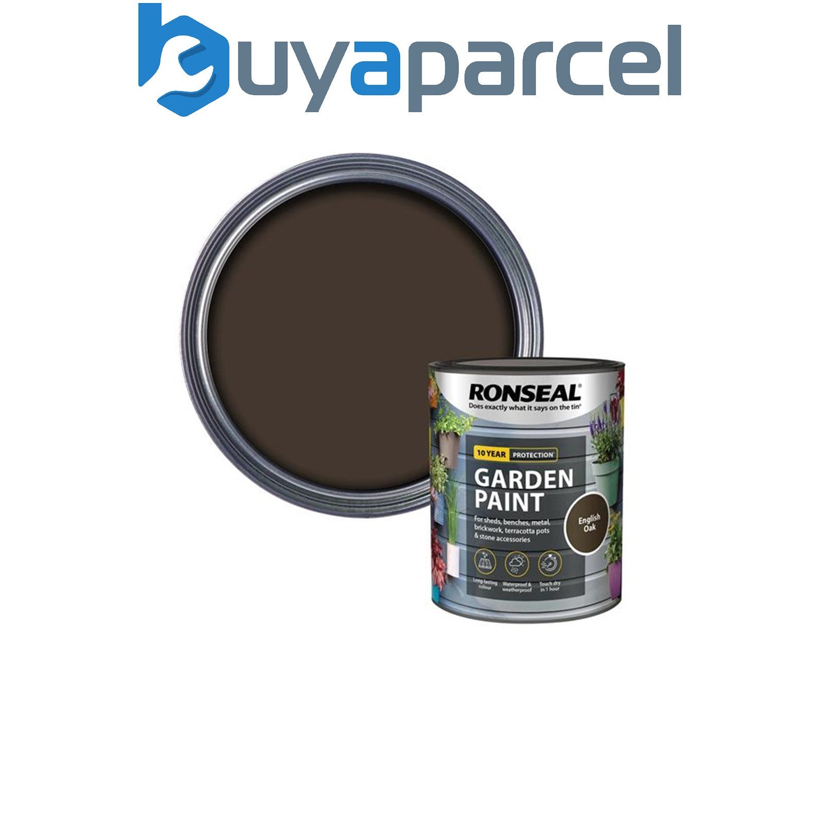 Ronseal 37405 Garden Paint English Oak 750ml Exterior Outdoor Wood Shed Metal