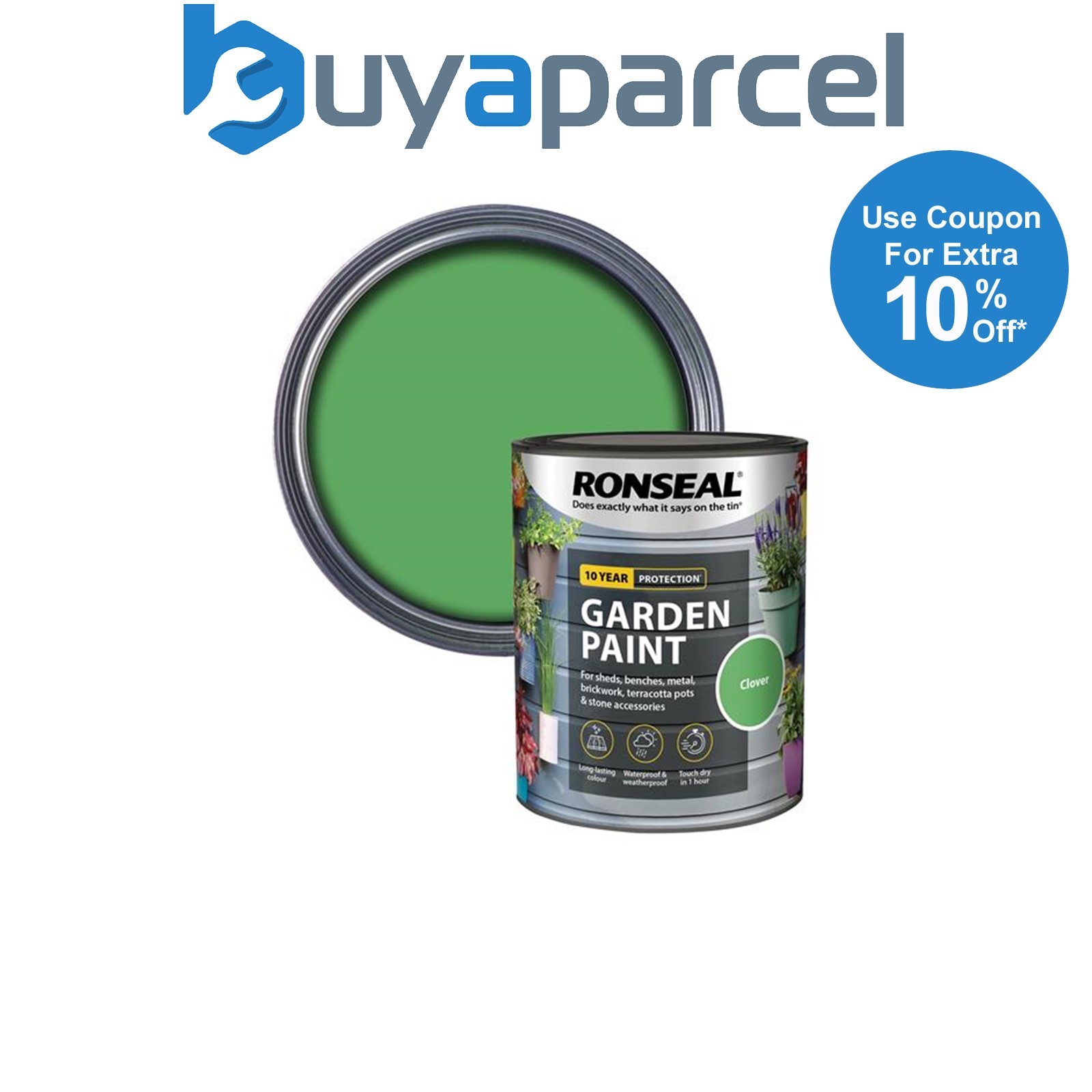 Ronseal 37605 Garden Paint Clover 750ml Exterior Outdoor Wood Shed Metal Brick