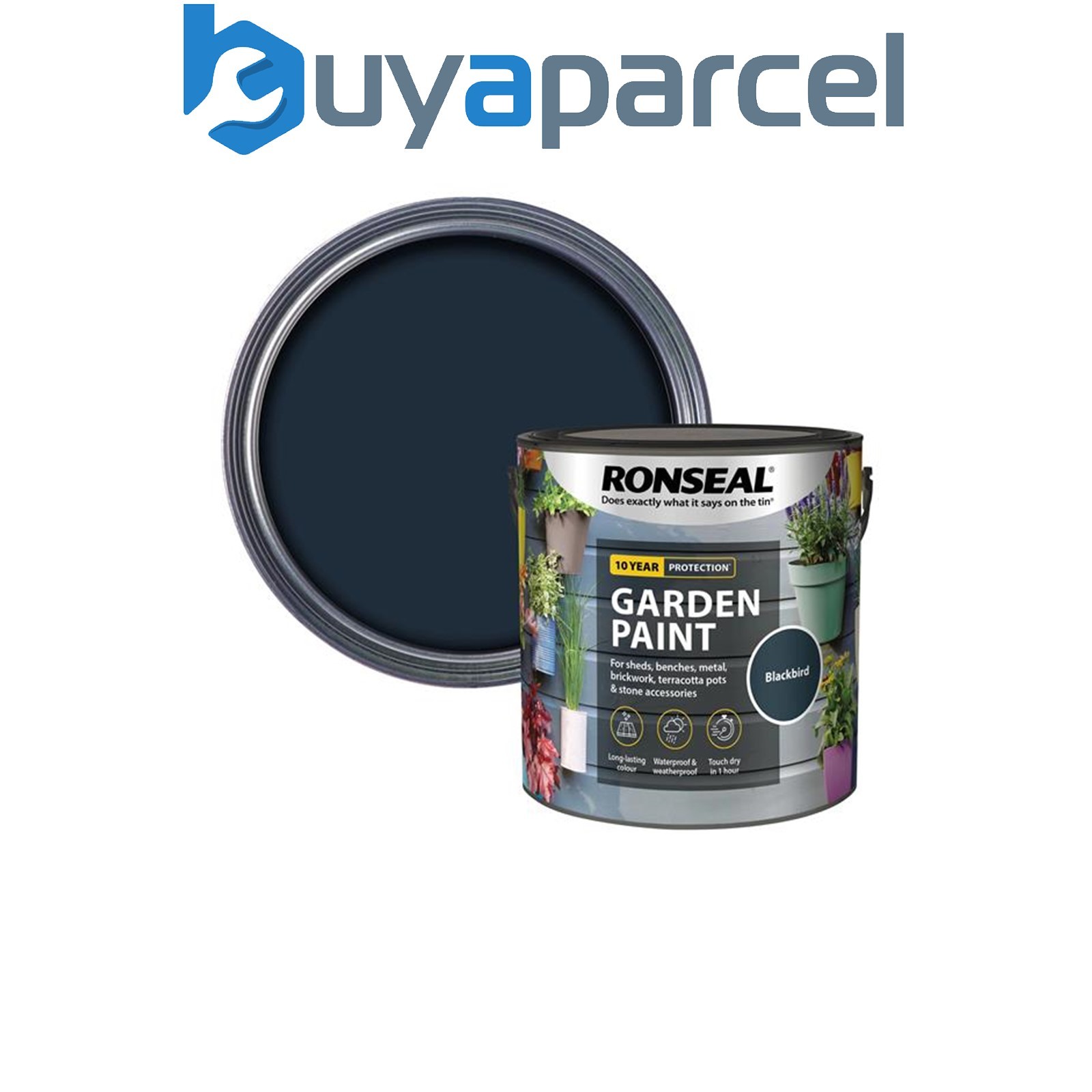 Ronseal 37430 Garden Paint Black Bird 2.5L Exterior Outdoor Wood Shed Metal