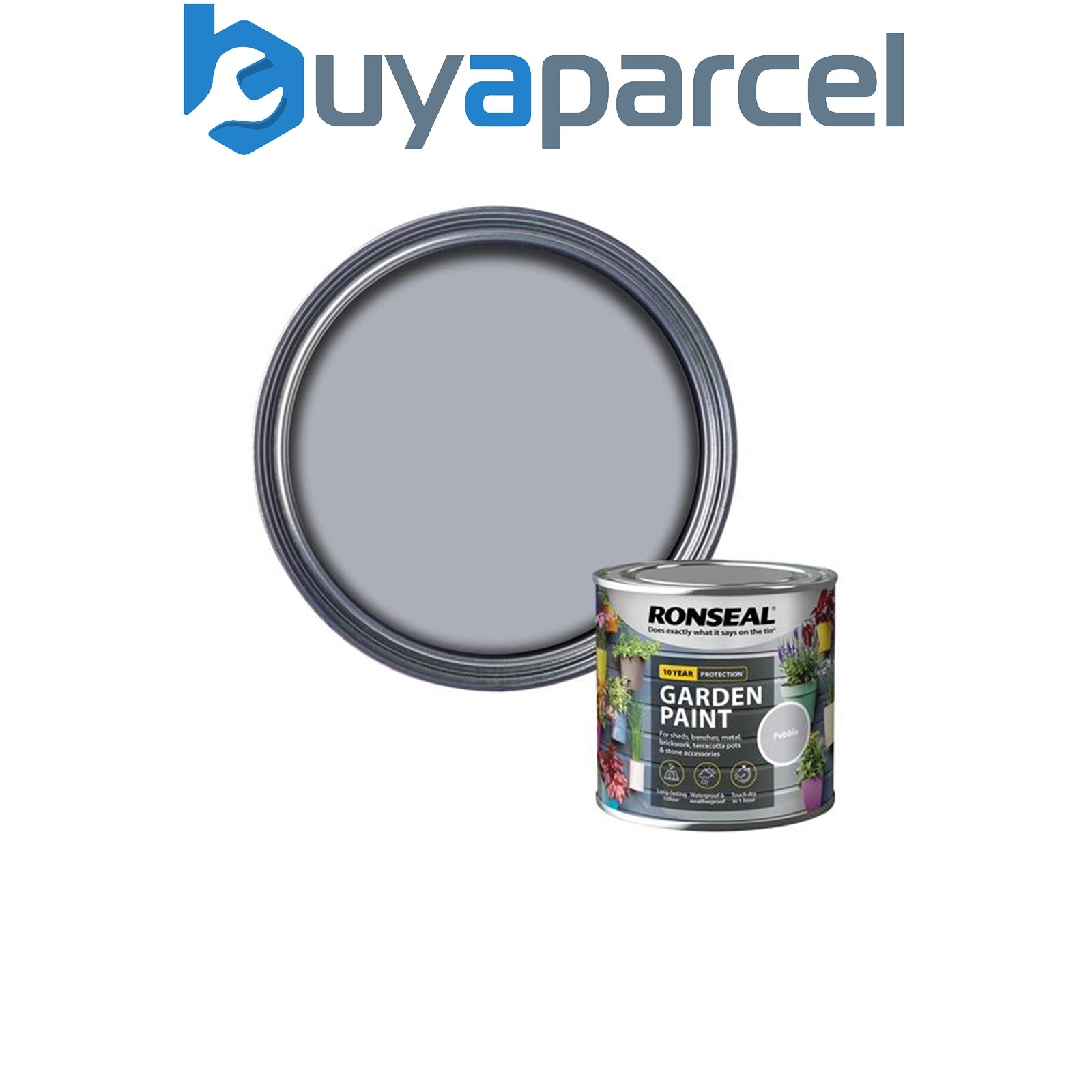 Ronseal 38264 Garden Paint Pebble 250ml Exterior Outdoor Wood Shed Metal Brick