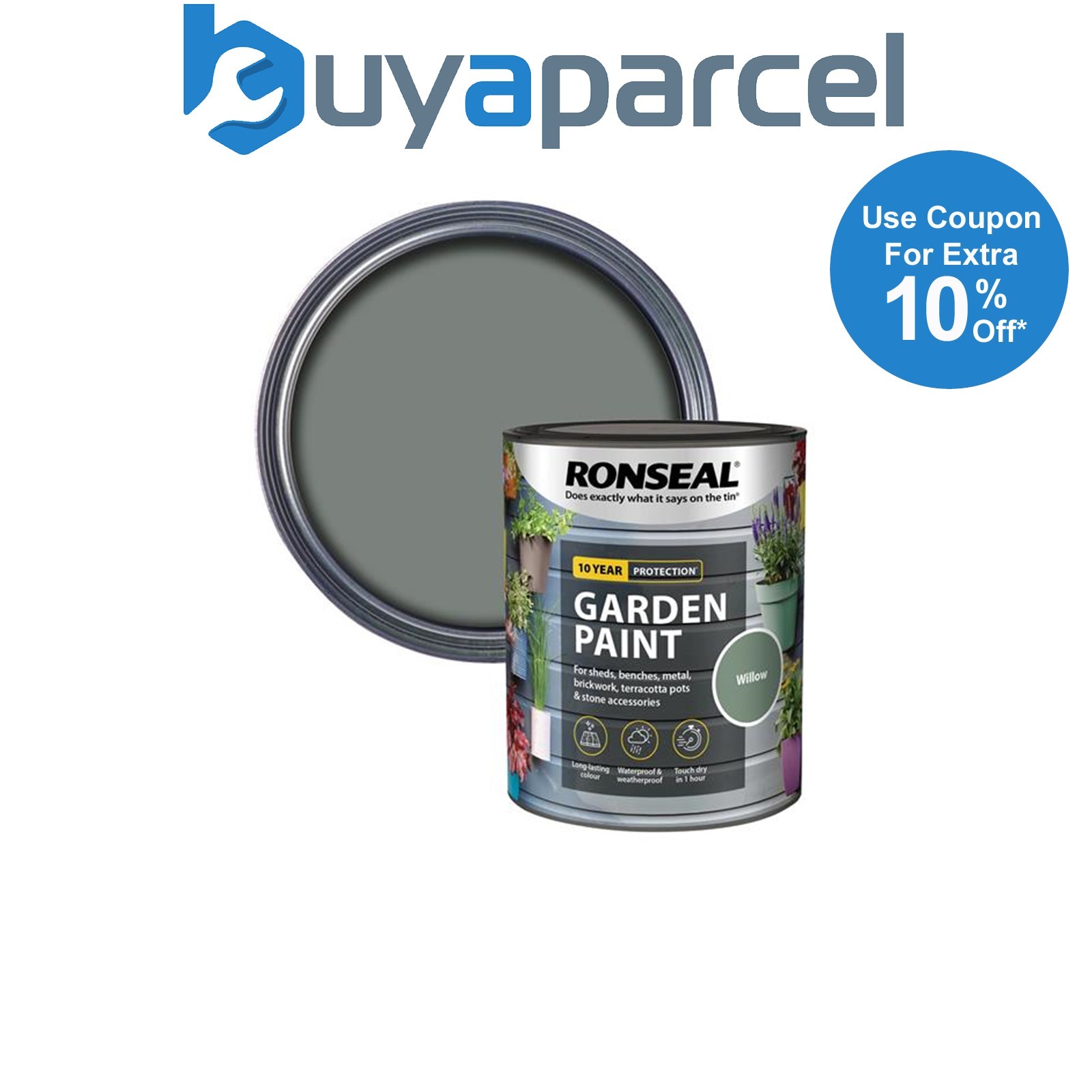 Ronseal 37396 Garden Paint Willow 750ml Exterior Outdoor Wood Shed Metal Brick