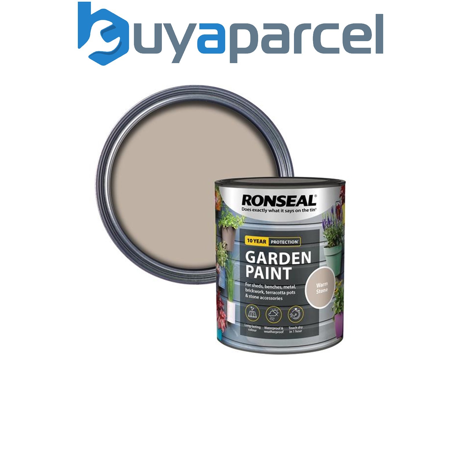 Ronseal 37603 Garden Paint Warm Stone 750ml Exterior Outdoor Wood Shed Metal
