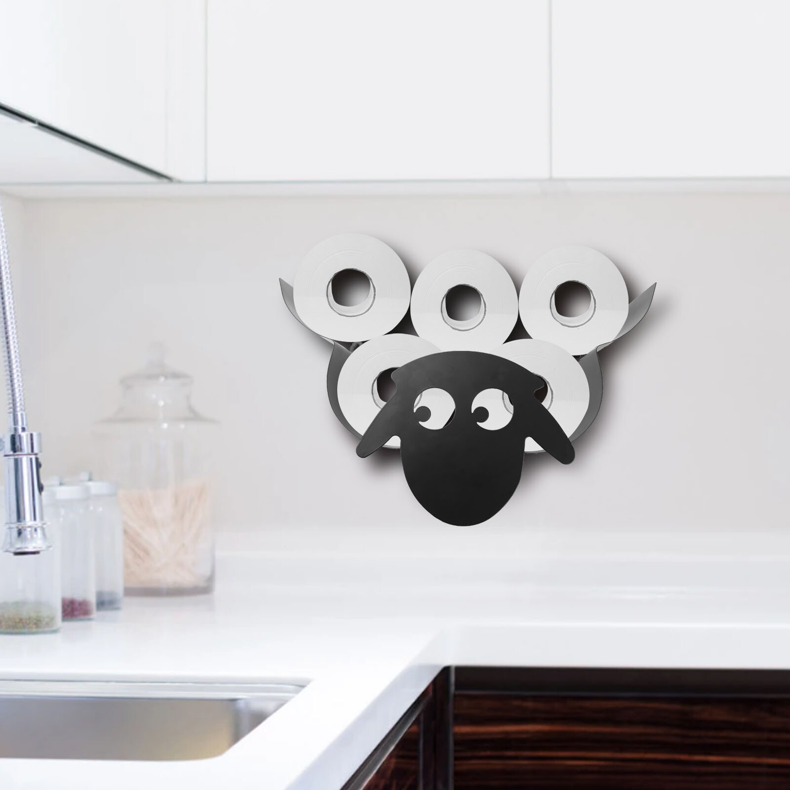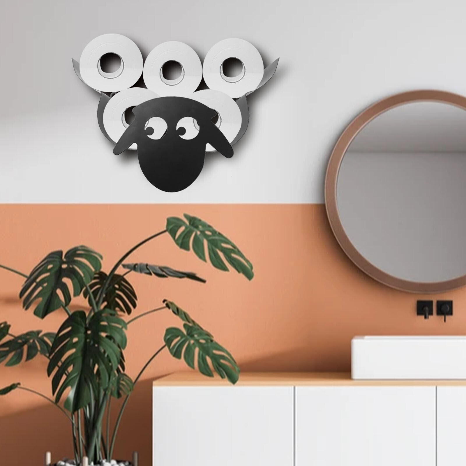 Black Metal Sheep Toilet Roll Holder â Wall-Mounted or Free-Standing, 8-Roll Capacity, Matte Finish, Novelty Bathroom Decor
