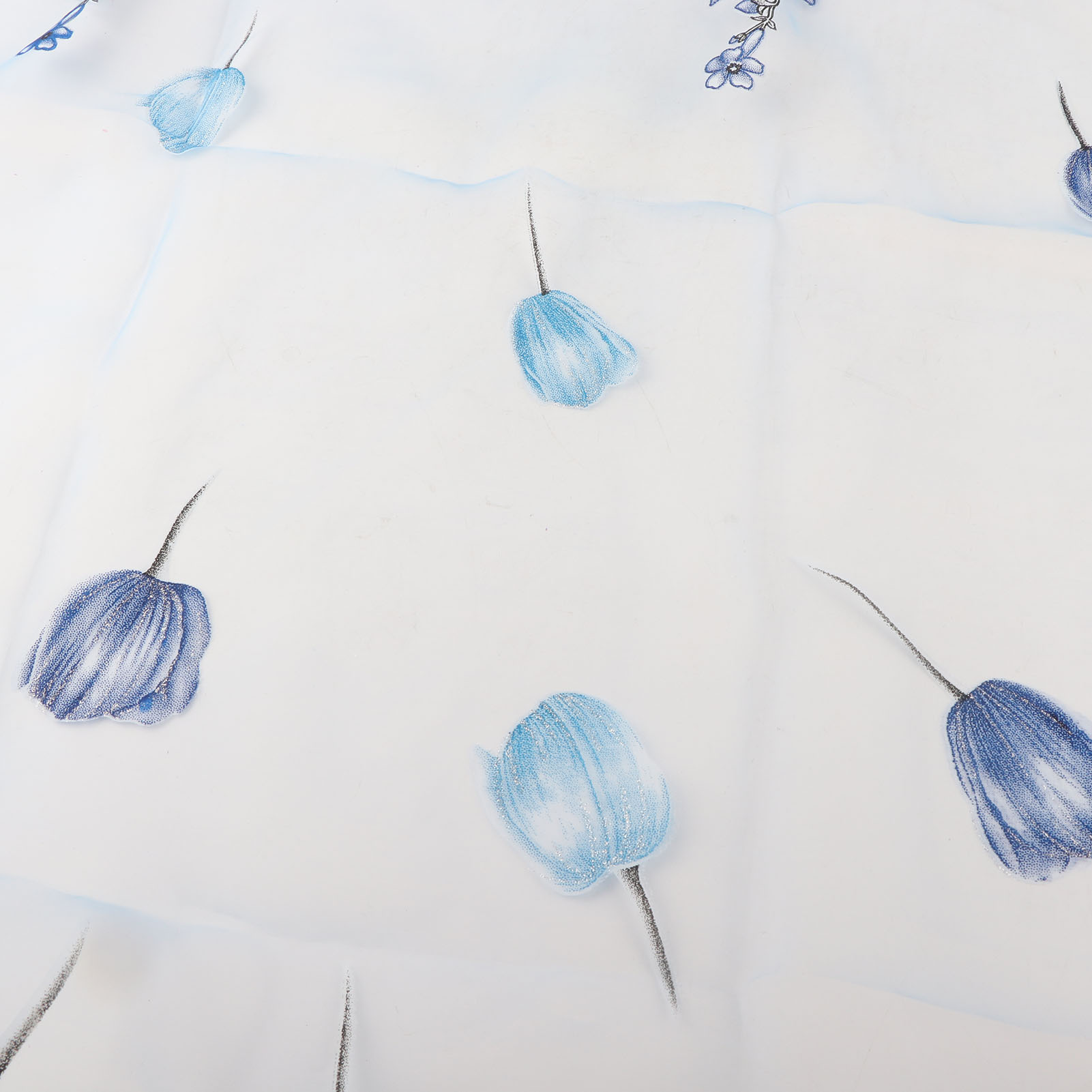 100cm x 200cm Tulips Design Tulle Curtains Sheer Drape for Balcony in Blue