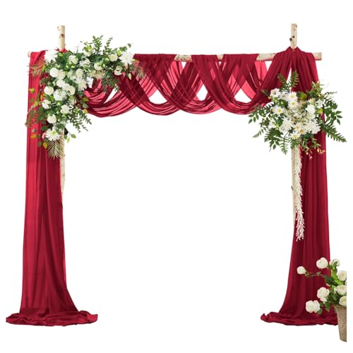 Buhdjfnke For Wedding Arch Drapery Fabric 29.5 Inch X 26.25 Feet Wine Red Drape for Wedding Ceremony Sheer Curtains