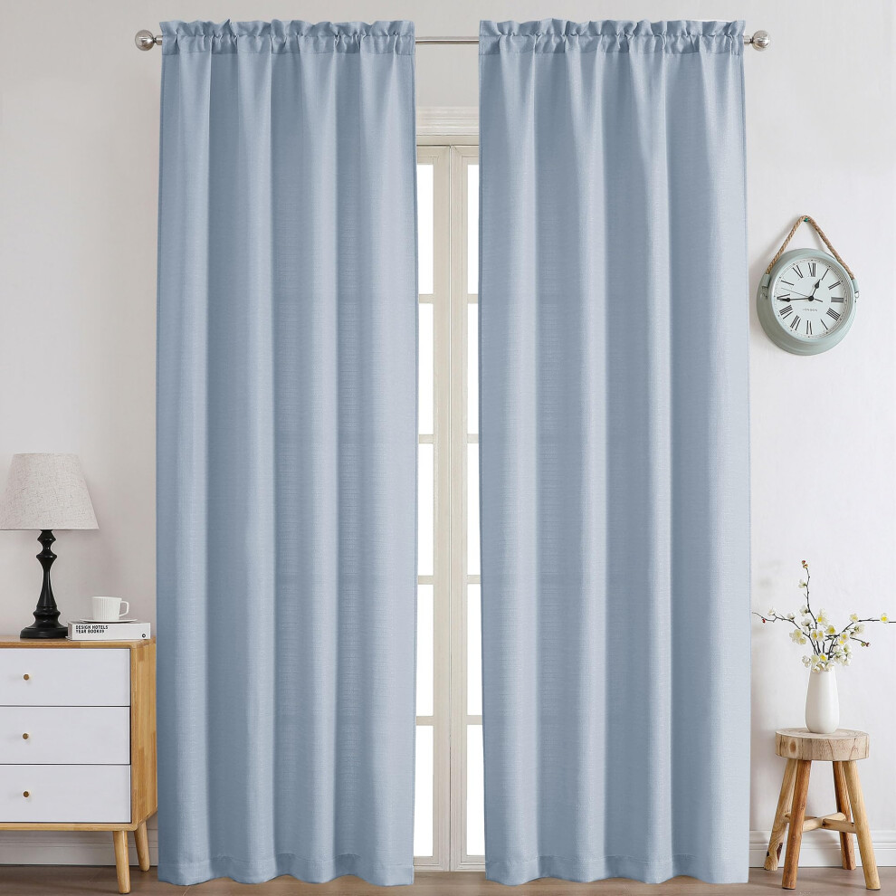 Chyhomenyc Bennet Aqua Blue Curtains 96 Inches Long 2 Panels Faux Linen Textured Semi Sheer Airy Light Filtering Soft Privacy Farmhouse Curtain Drape