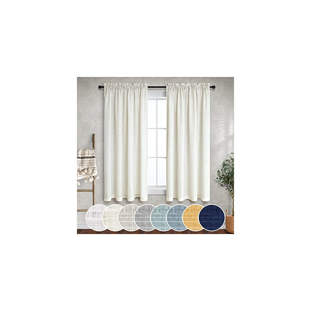 Natural Curtains 54 Inch Length for Master Bedroom 2 Panels Rod Pocket Gender Neutral Light Filtering Drape Light Weight Flax Linen Sheer Bright Curta