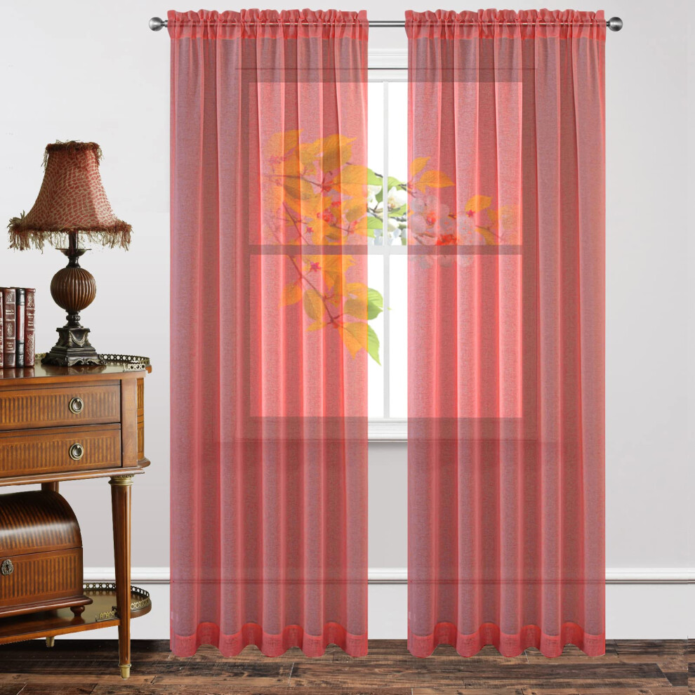 Joydeco Red Sheer Curtains 84 Inch Length 2 Panels Set Rod Pocket Long Sheer Curtains for Window Bedroom Living Room Lightweight Semi Drape Panels f