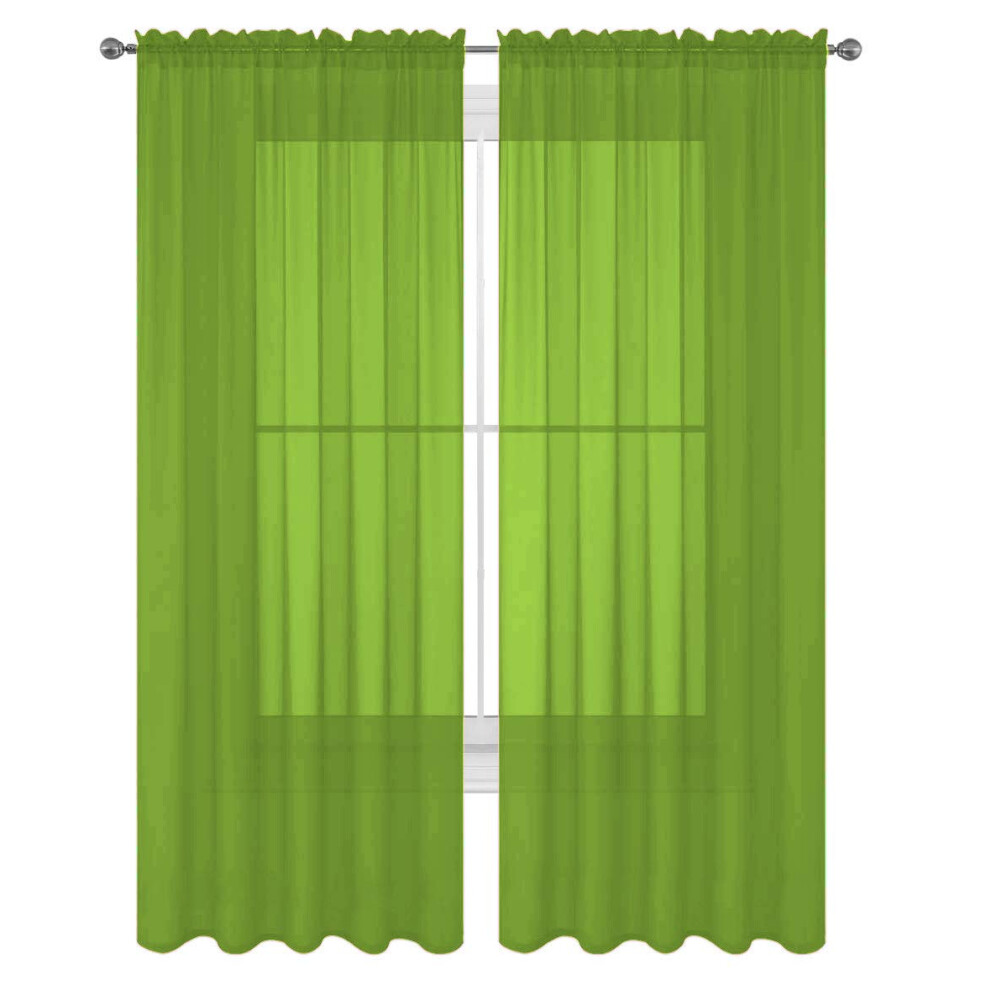 Decotex 2 Piece Solid Elegant Sheer Curtains Fully Stitched Panels Window Treatment Drape (54"""" X 36"""" Lime Green)