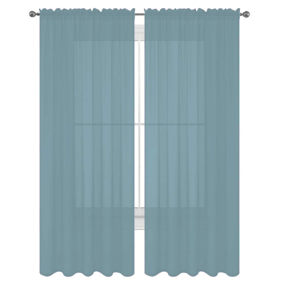 Decotex 2 Piece Solid Elegant Sheer Curtains Fully Stitched Panels Window Treatment Drape (54"""" X 84"""" Slate Blue)