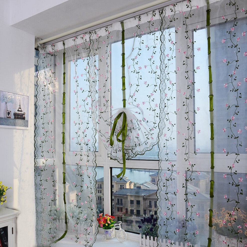 Green 100*200cm Tulips Printing Tulle Curtains Sheer Drape Balcony Window