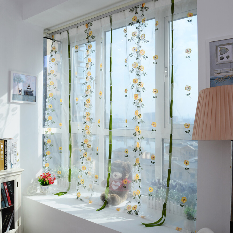 Tulle Yarn Curtains Chrysanthemum Sheer Drape 80*200cm