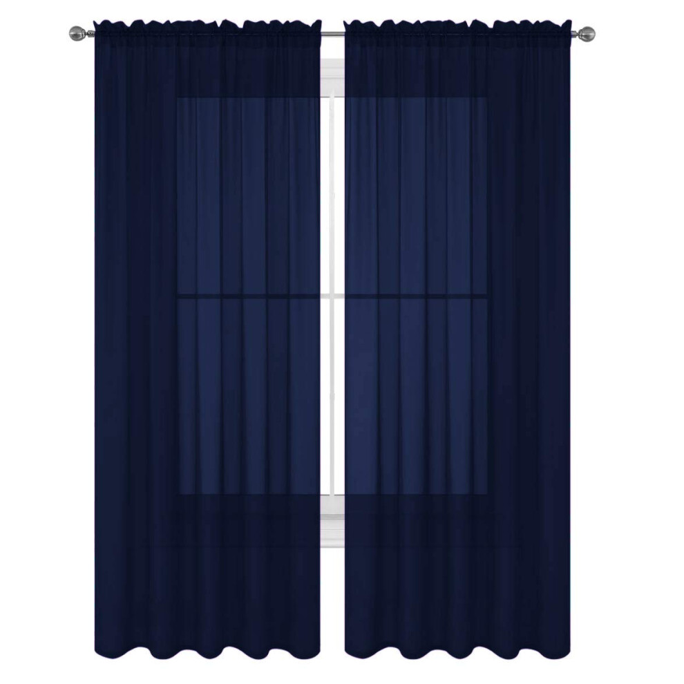 Decotex 2 Piece Solid Elegant Sheer Curtains Fully Stitched Panels Window Treatment Drape (54"""" X 84"""" Navy Blue)