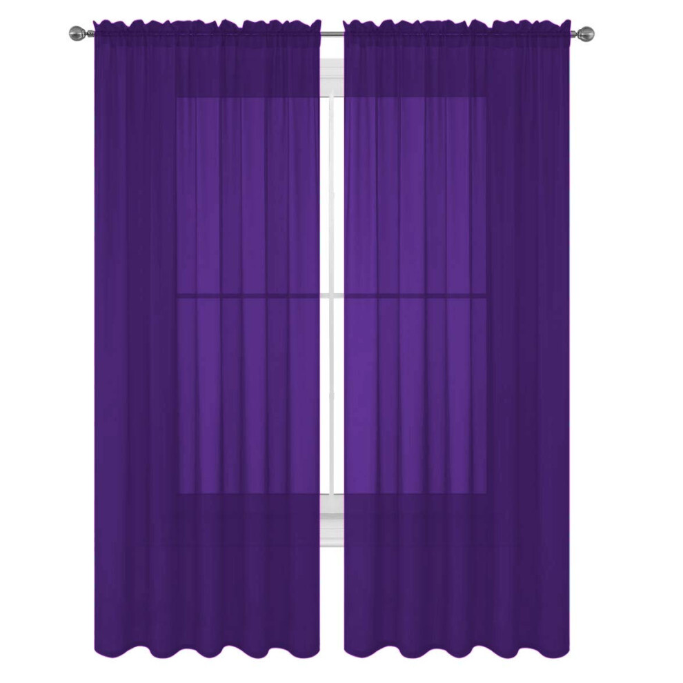 Decotex 2 Piece Solid Elegant Sheer Curtains Fully Stitched Panels Window Treatment Drape (54"""" X 36"""" Purple)