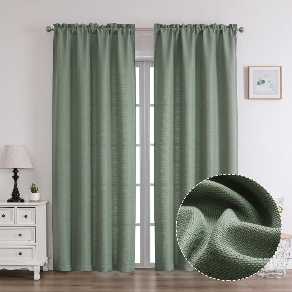 Chyhomenyc Sage Green Curtains 96 Inch Length 2 Panels Faux Linen Textured Semi Sheer Light Filtering Soft Breathable Privacy Farmhouse Curtain Drape