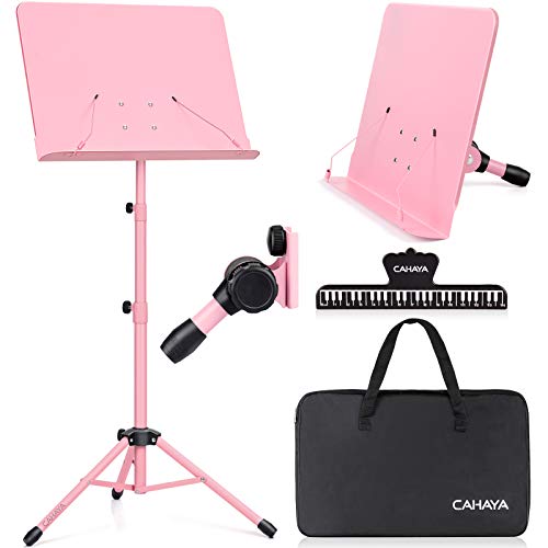 CAHAYA Sheet Music Stand Metal Portable with Carrying Bag, Sheet Music Clip, Projector Stand, Portable Podium Stand, Laptop Stand Pink, Height up to 145 cm, Model CY0194-1