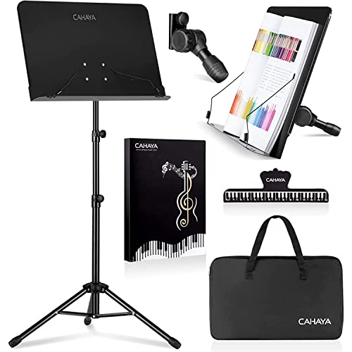 CAHAYA Sheet Music Stand Dual Use with Clamp-on Tray and Desktop Book Stand, Sheet Music Folder, Projector Stand for Guitar, Ukulele, Violin Players