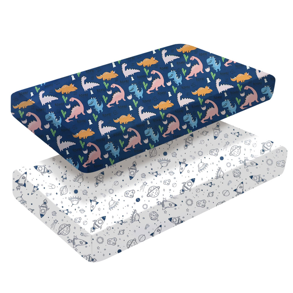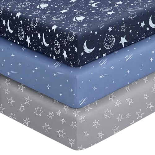 Unnivoll Cot Sheets 120 x 60 cm Fitted Super Soft & Breathable Toddler Bed Sheets Cozy Baby Cot Bed Sheets 3 Pack Dark Blue Planet