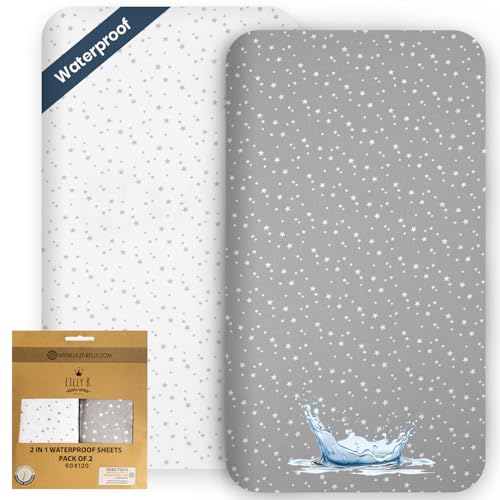Lilly Belly - Next to Me Crib Sheets | Cot Bed Sheets | 100% Organic Cotton Pack of 2 Waterproof Cot Sheets | use as Mattress Protector |120 x 60 cm Cot Sheets for Toddler Bed