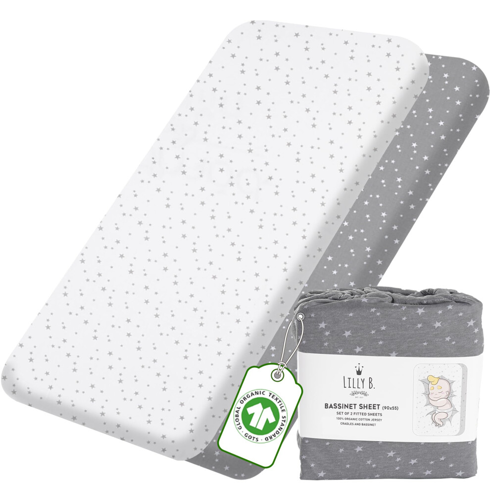 Lilly Belly Pack of 2 Next to Me Crib Sheets 100% Organic Cotton GOTS Cert. - Compatible with Moses Basket Sheets, Cot Bed Sheet, Organic tutti bambi