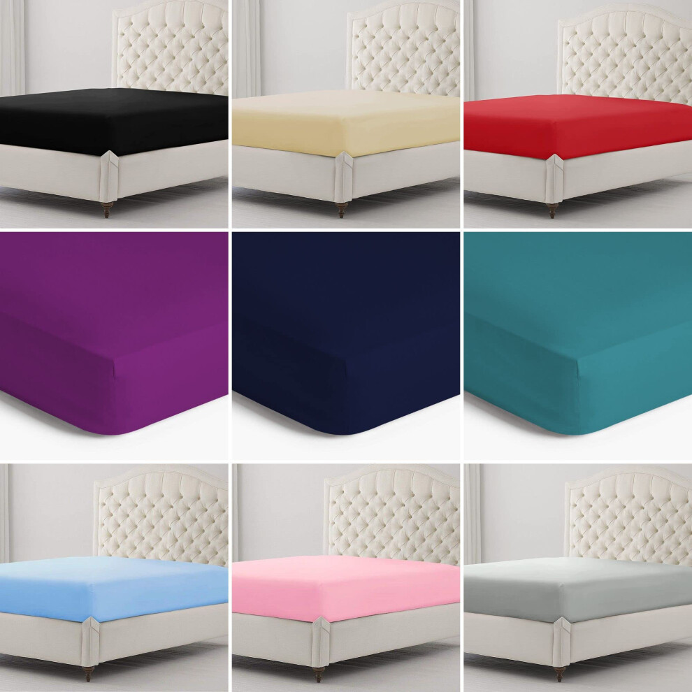 Plain Dyed Fitted Sheets Cot Bed Deep Fit 15cm (6") Non Iron Percale Polycotton Durable Bottom Linen Bed Sheet (Cot 70 x 140 cm, Red)
