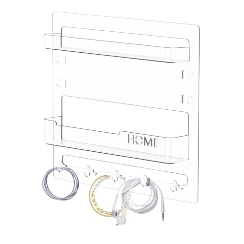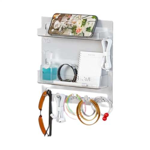 Kitchen Movable Shelves, Wall Sticker Bathroom Organizer | Wall Mounted Dormitory Storage Shelf Shelf with Hooks and Cable Clips for Phone, Remote, Earphone
