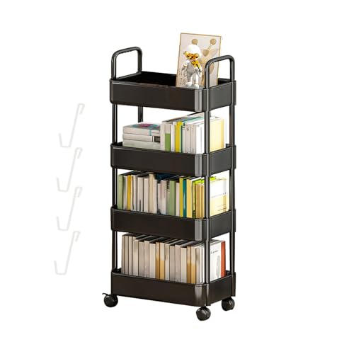 Utility Cart with Wheels | Rolling Cart Organizer for Books,3/4 Tier Rolling Shelf with Wheels and Hooks, Storage Cart, Snack Cart for Kitchen, Bedroom,