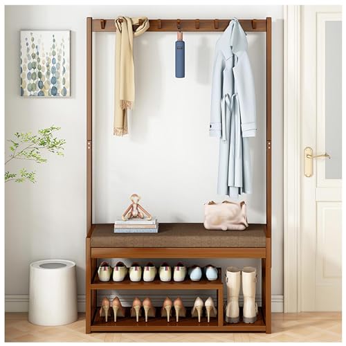 JAVPTAV Multifunctional 3 In 1 Coat Rack Shoe Bench with Storage Shelf and Hooks Freestanding Home nizer(64x31x173CM)