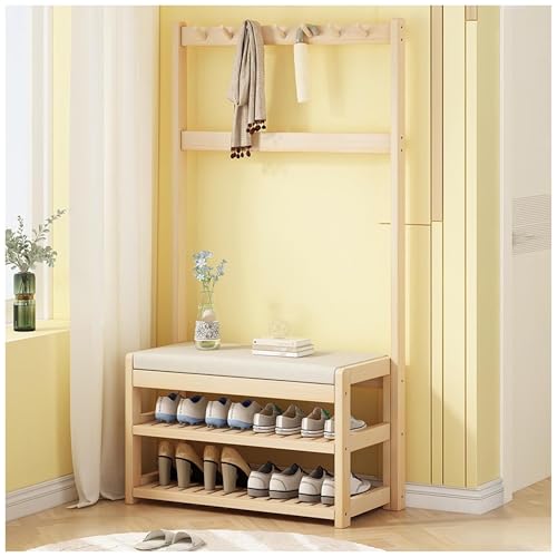 JAVPTAV Multifunctional 3 In 1 Coat Rack Shoe Bench with Storage Shelf and Hooks Freestanding Home nizer(74x31x173CM)