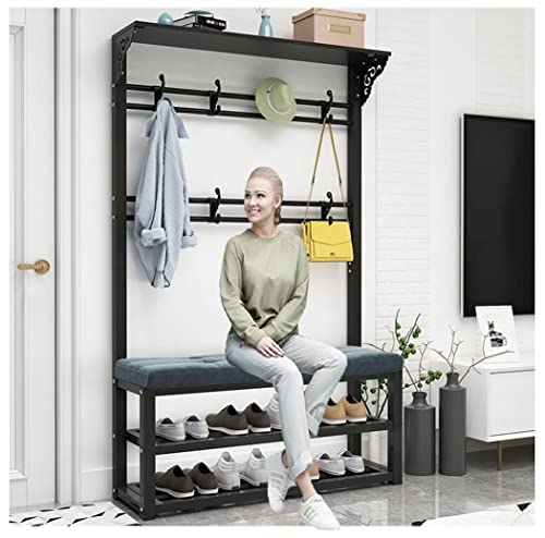 SLGGPJBU Exquisite Clothes Rail Rack Coat Rack Shoe Bench, 4-in-1 Shoe Rack For Entryway, 2-Tier Storage Shelf And 7 Hooks Removable, Industrial Accent Furnitu