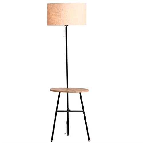 HJLJKG Shelf Floor Lamp,Solid Wood Lamp Stand Floor Lamps Fabric Lampshade Creativity Standing Lamp Living Room Bedroom Decoration Decoration