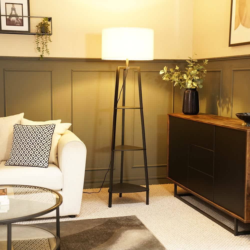 3-Tier Shelf Floor Lamp with Shade Free Standing Standard Light Storage Black